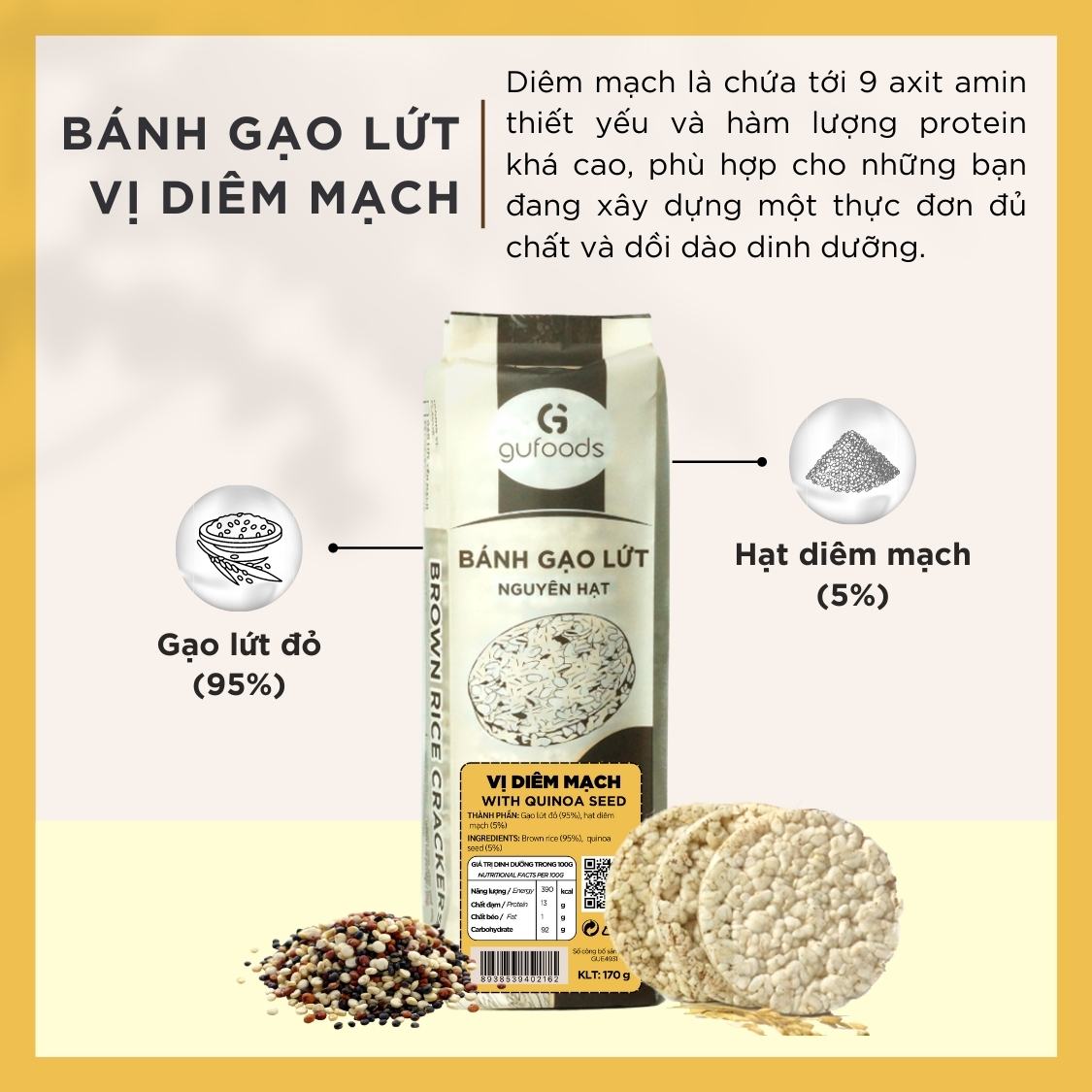 Bánh gạo lứt nguyên hạt GUfoods là sự kết hợp giữa hạt gạo lứt Việt Nam giàu chất xơ và công nghệ ép thuỷ lực hiện đại, giúp giữ trọn 99% giá trị dinh dưỡng của gạo lứt.
