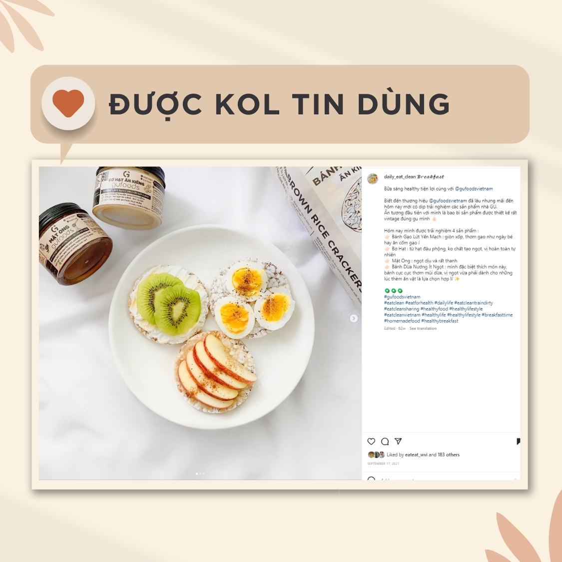 Để bạn thương được ăn uống healthy một cách thật kinh tế, GU gợi ý bạn có thể dùng bánh gạo lứt hữu cơ hạt chia như một nguyên liệu để làm bánh hoặc làm các món ăn vặt, không chỉ làm cho các món ăn trở nên healthy hơn mà còn tiết kiệm được kha khá chi phí mua nguyên liệu đó.