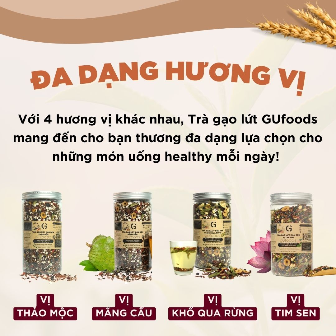 Trà gạo lứt đậu đen GUfoods (Hũ 500g) – Vị khổ qua rừng – Thanh nhiệt, Mát gan, Cải thiện giấc ngủ